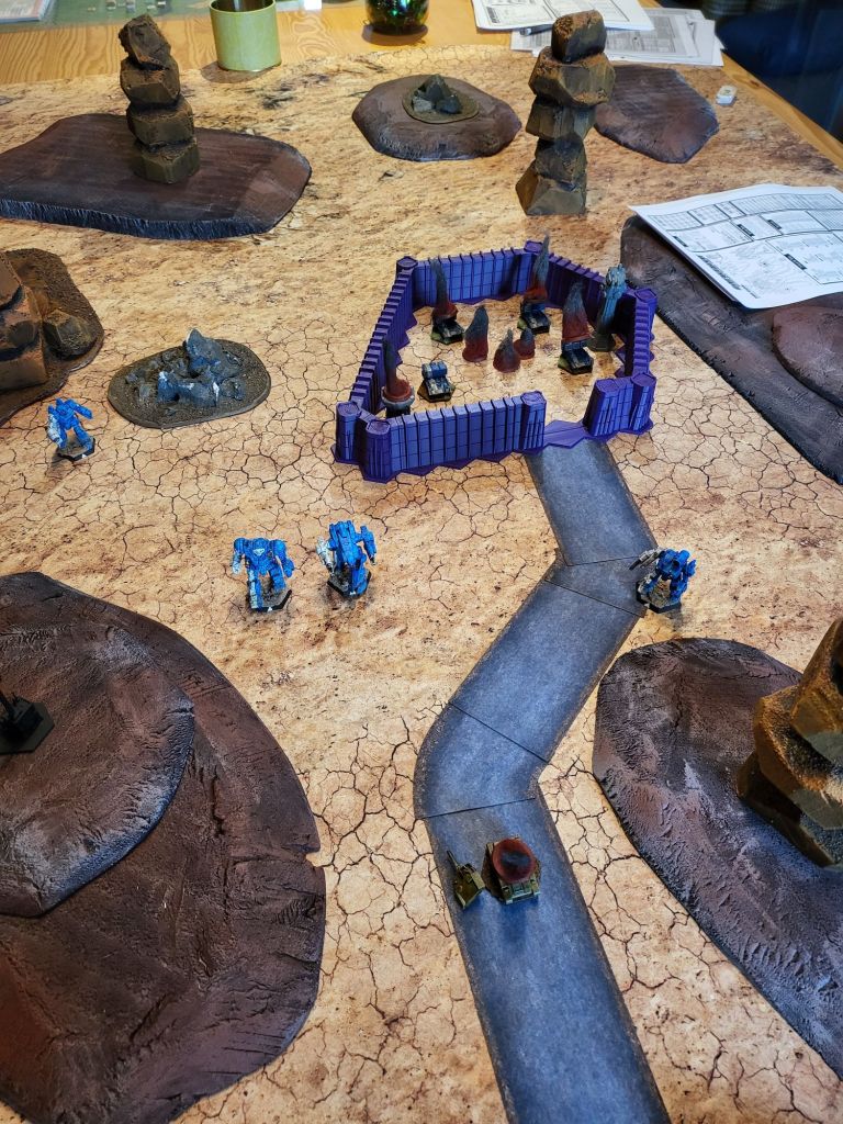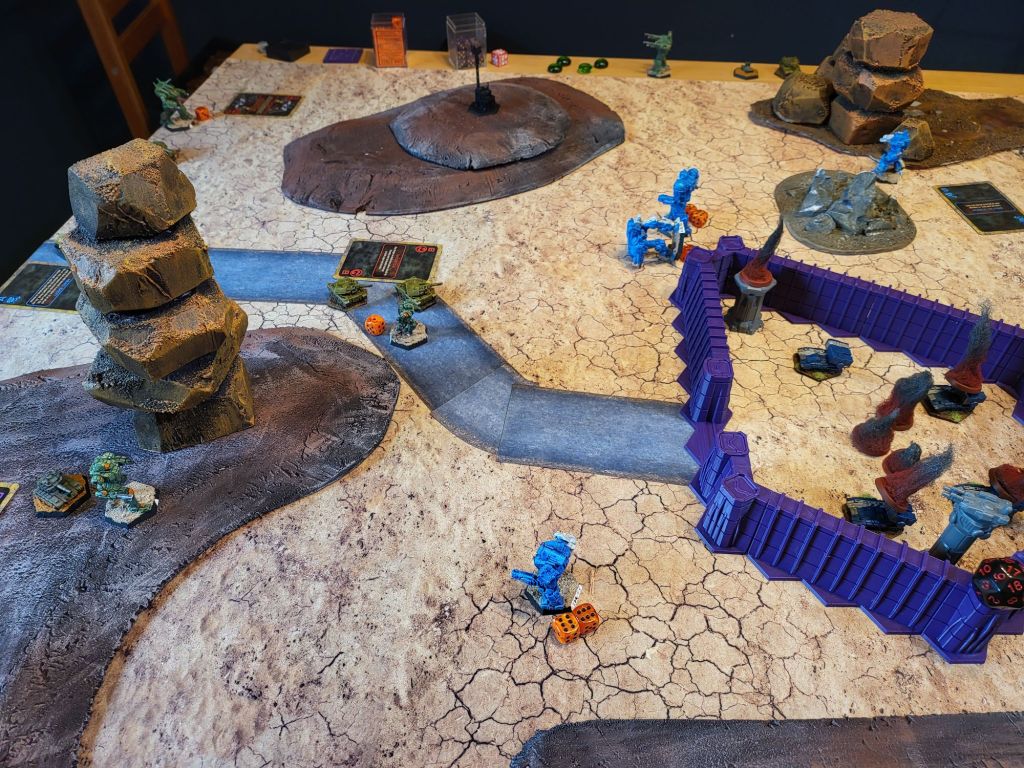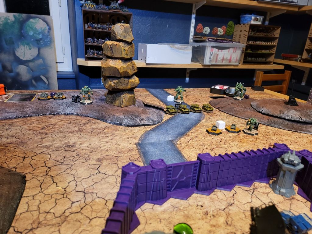 Le Hauptmann Oddvarr regardait les forces ennemies diminuer dans le desert. Le métal surchauffé autour de lui sifflait en se déformant sous l’intense chaleur alors que les dissipateurs thermiques hurlaient leur souffrance. Il avaitr repoussé l’attaque, mais pas avant que la base ne subisse des dommages irréversibles.