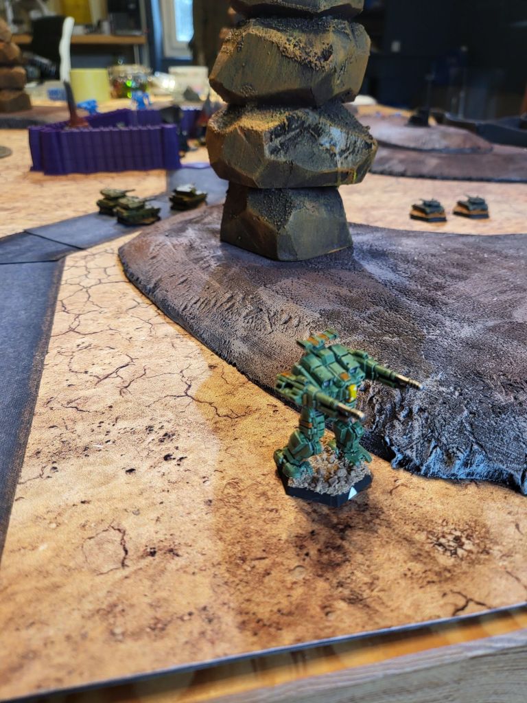 Sa phrase mourut dans sa bouche, ses capteurs indiquaient que quatre battlemechs lourds approchaient par le Nord, et à leur tête, un terrifiant Atlas.