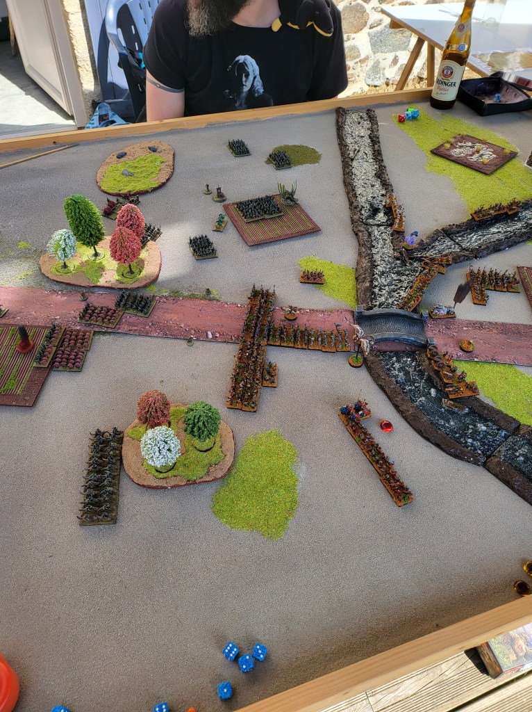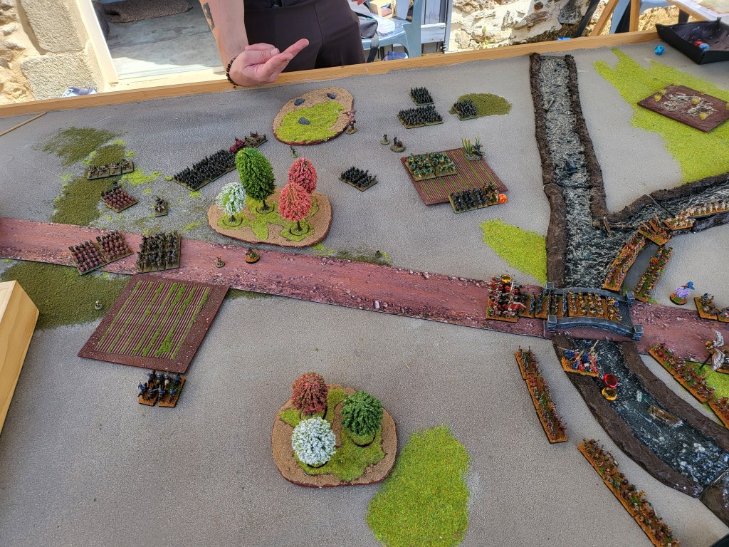 La partie se déroule sur un terrain ouvert, et afin fd procéder à une initiation amusante, je choisi de retirer la règle du soleil couchant, normalement prévue pour éblouir l’anglais.