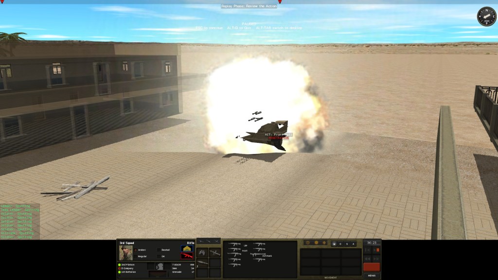 Malheureusement, mon squad à l’est est démoralisé et se rend, celui de l’Ouest est éliminé en combat rapproché.