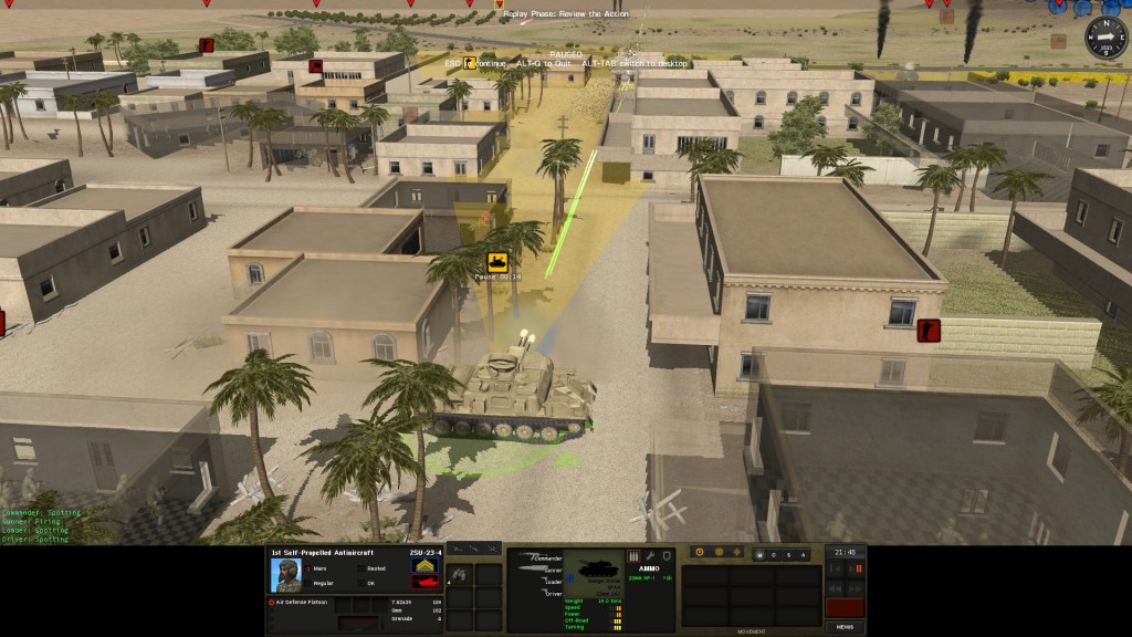 Il approche un Humvee avec TOW en ligne de mire de mon second Shilka (entre les bâtiments à l’arrière plan), qui tirera en premier ?